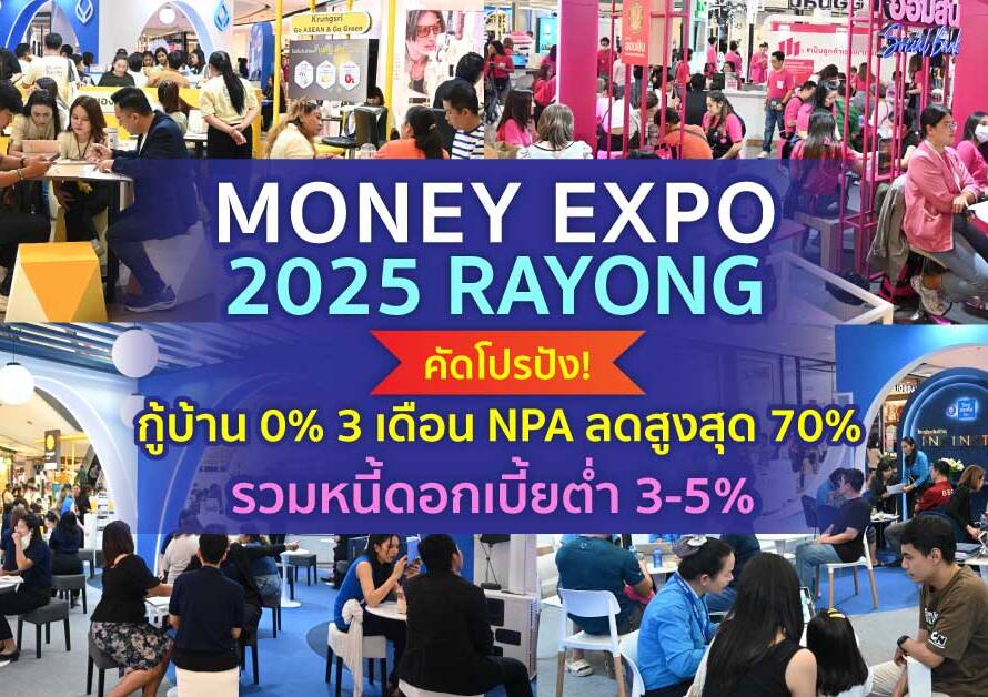 Event NewsAugust 27, 2025MONEY EXPO 2025 RAYONG คัดโปรปัง! กู้บ้าน 0% 3 เดือน NPA ลดสูงสุด 70% รวมหนี้ดอกเบี้ยต่ำ 3-5% ผ่อนนาน 10 ปี