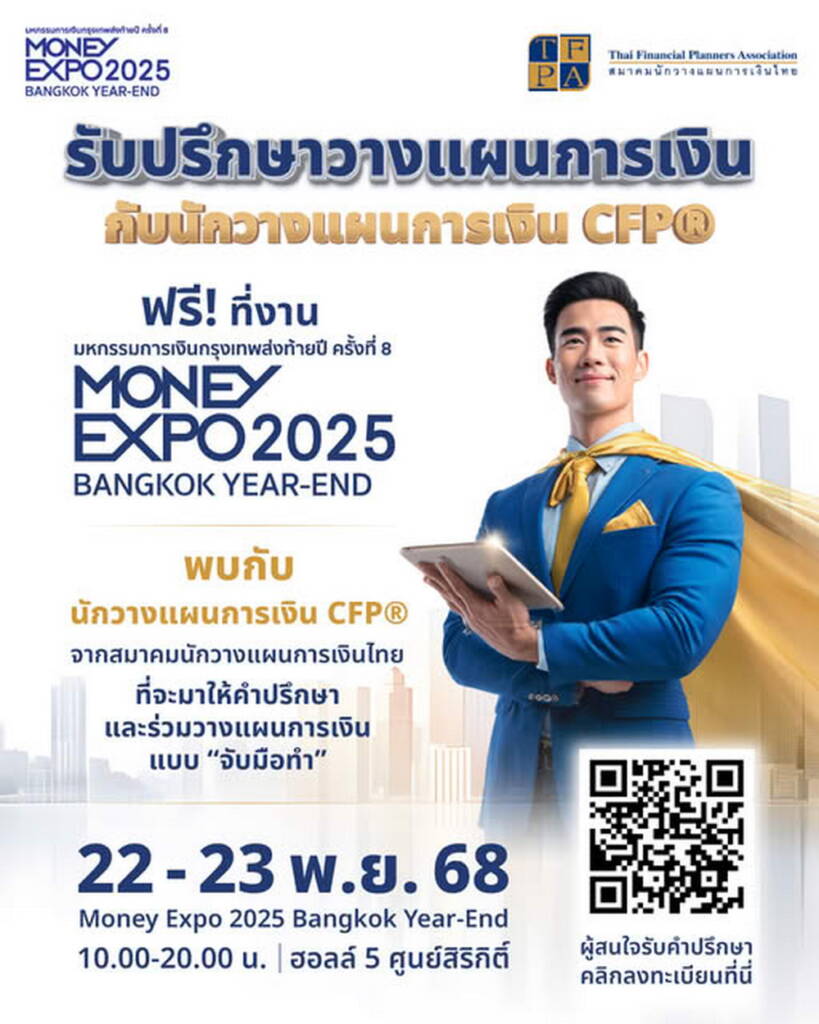 พลาดไม่ได้กับบริการ “วางแผนการเงินแบบตัวต่อตัว” โดยนักวางแผนการเงิน CFP® จากสมาคมนักวางแผนการเงินไทย พร้อมจับมือวางแผนให้คุณทุกขั้นตอน ทั้งการออม–ลงทุน–ภาษี–อนาคต ครบจบ!