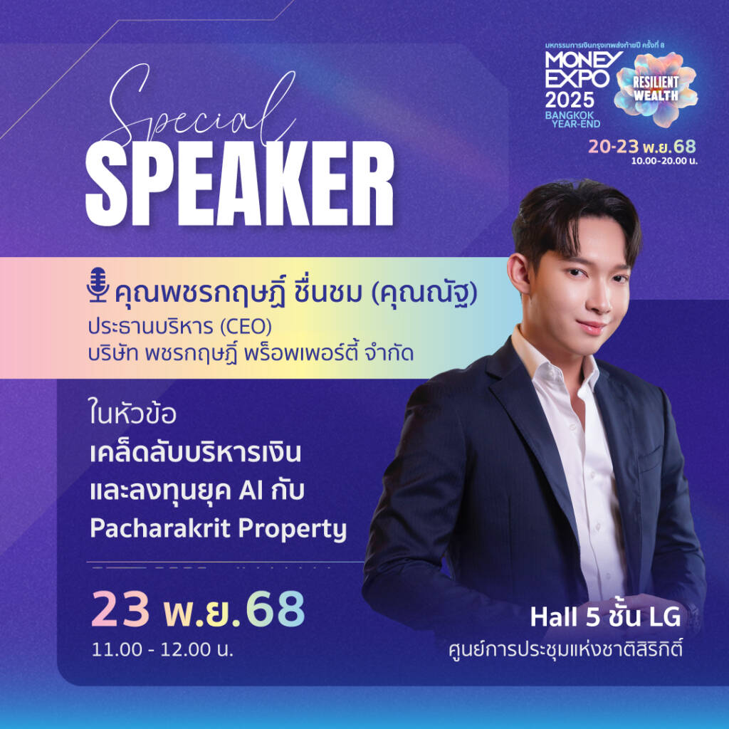 หัวข้อ : “เคล็ดลับบริหารเงินและลงทุนยุค AI กับ Pacharakrit Property”