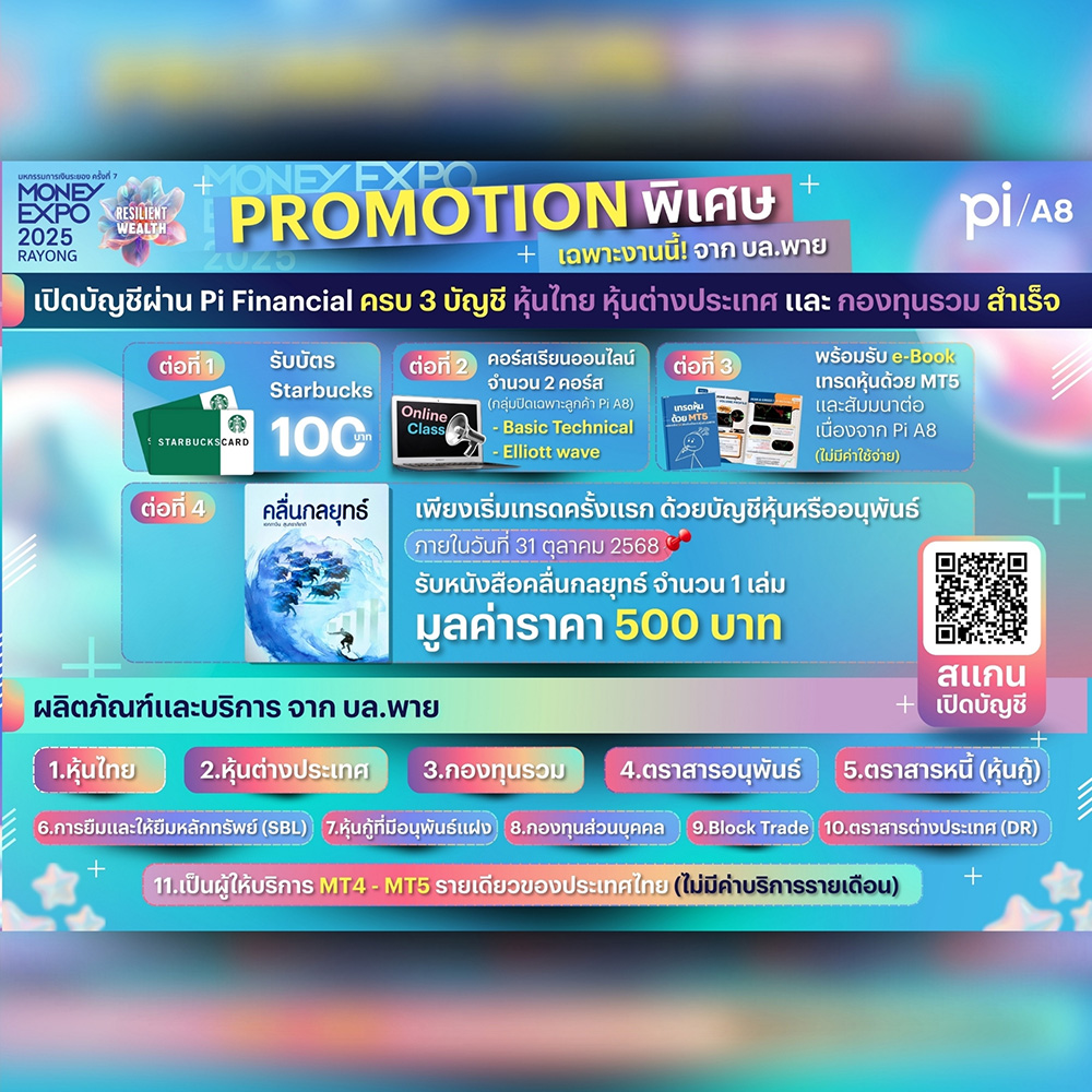 ต่อที่ 4 เพียงเริ่มเทรดครั้งแรก ด้วยบัญชีหุ้นหรืออนุพันธ์ ภายในวันที่ 31 ตุลาคม 2568 รับหนังสือคลื่นกลยุทธ์ จำนวน 1 เล่ม (มูลค่าราคา 500 บาท)